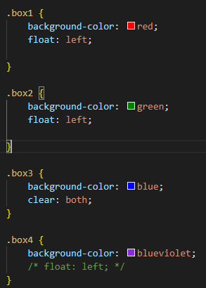 box는 총 4개였으나 위에 2개만 float를 적용하면