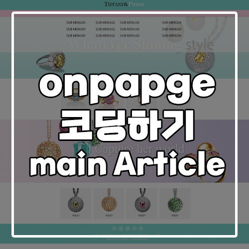 본격적으로 페이지의 중심이 되는 메인파트를 만들어보려고한다. 메인파트는 총5개의 파트로 나뉘어있고, 모두 article을 시맨틱태그로 구성하였다. box01 현재 들어가는 대부분의 이미지들은 css에서 background로 삽입하였다. box01에서 핵심이 되는 부분은 ul>li>div가 총 4개로 구성되어있다는 점인데, 좌우에있는 p요소 핸들을 넘기면 옆으로 이미지가 넘어가야 하기에 보이는 것은 한면이지만 오른쪽에 3개가 더 숨어있다는 것이다. 먼저 상위에 글씨는 p요소에 span 으로 두개를 만들어준다. The World of beauty Tiffany is the most original in the world for about 200 years We have designed rare and fas..